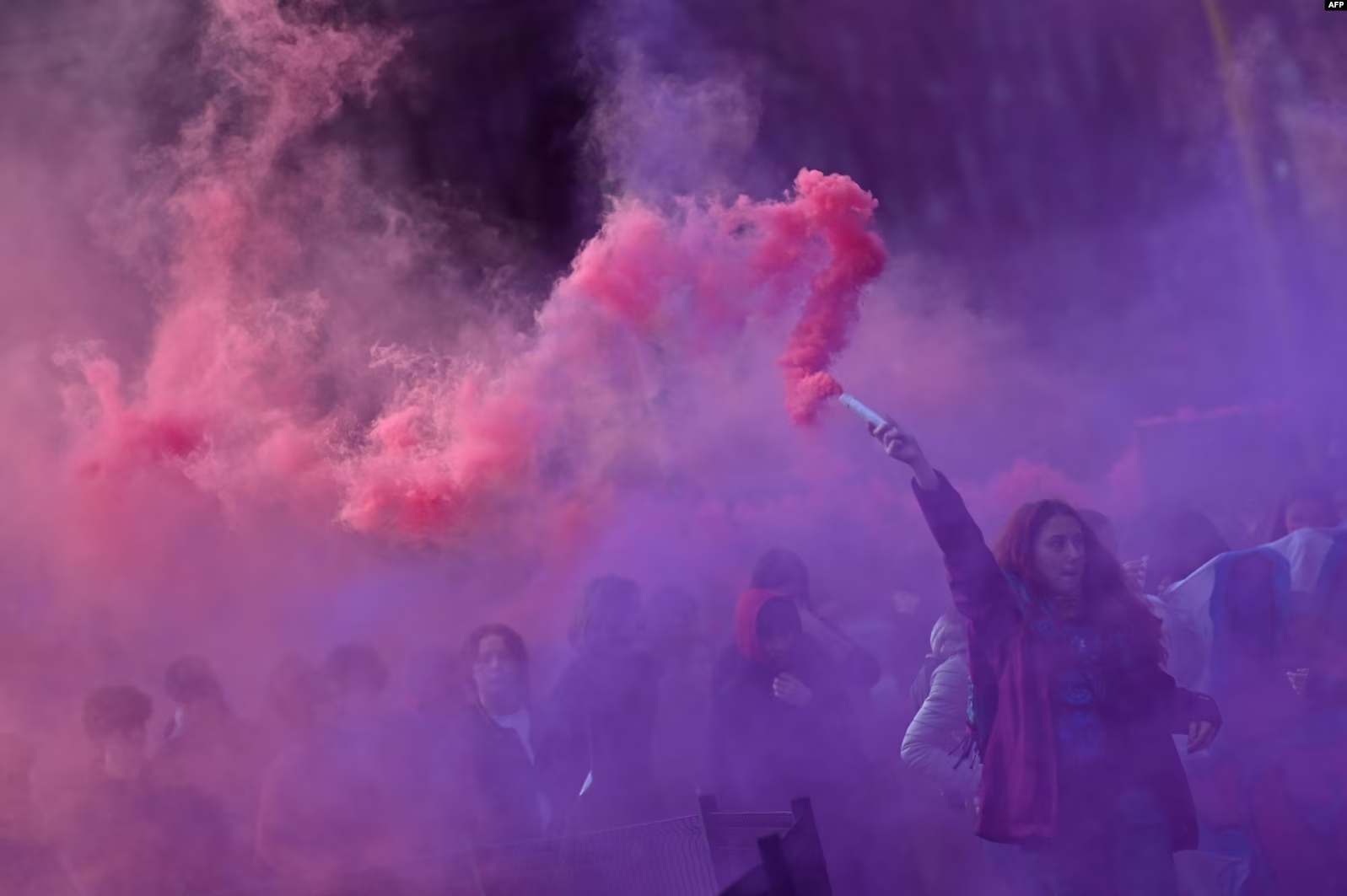 Students attend a demonstration to denounce violence against women, as part of the International Women's Day, in Milan.