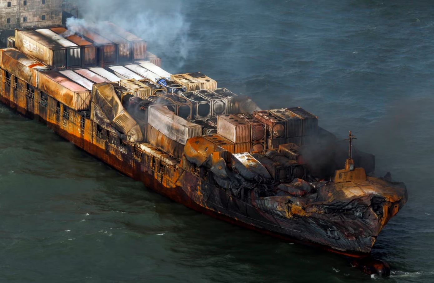 Smoke billows from the MV Solong cargo ship in the North Sea, off the Yorkshire coast in England. The cargo ship carrying a toxic chemical hit a tanker carrying jet fuel for the U.S. military off England, setting both vessels on fire and sending fuel pouring into the North Sea on March 10. One crew member is missing and presumed dead after the collision. The other 36 crew members survived.