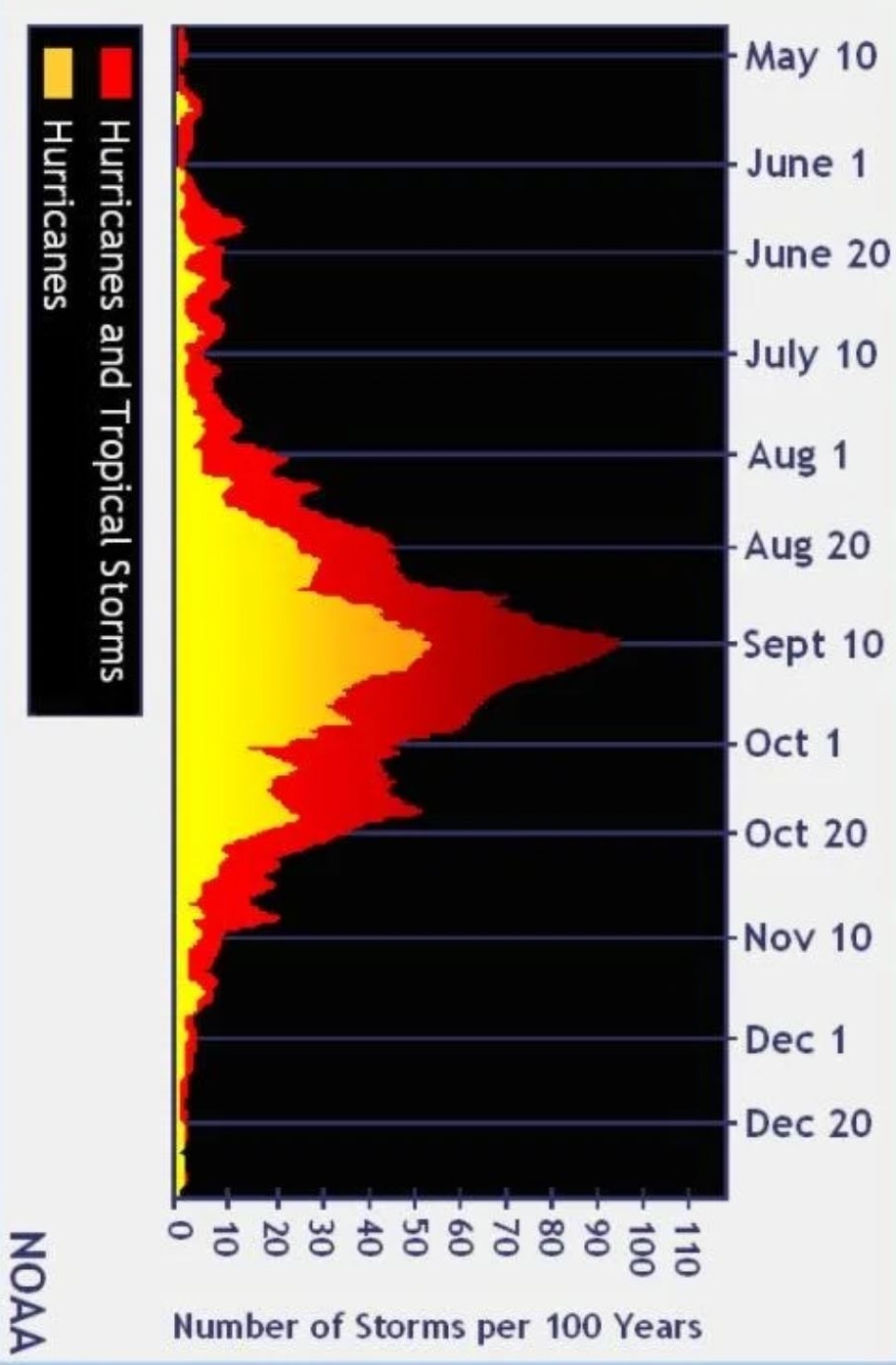 ※ Hurricane season's ultimate peak is Sept. 10 but the season goes through Nov. 30.